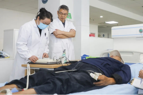 上午9:30,血液净化科前来就诊的患者络绎不绝,马旭主任及其团队为患者一一开展了动静脉内瘘筛查和干体重分析,为患者提供个性化的动静脉内瘘治疗方案,并针对血管通路的日常保养、异常原因分析及早干预措施等,为患者及家属进行了耐心讲解。